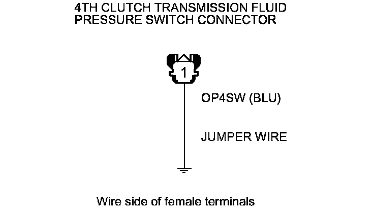 10. Connect a jumper wire between the 4th clutch transmission fluid pressure switch connector terminal and body ground.