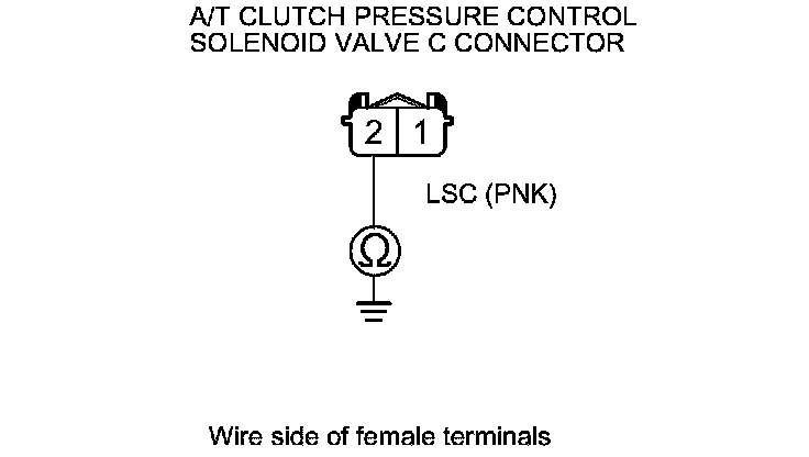 15. Check for continuity between A/T clutch pressure control solenoid valve C connector terminal No. 2 and body ground.