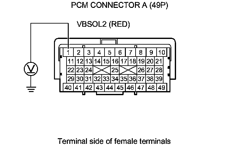 18. Measure the voltage between PCM connector terminal A1 and body ground.
