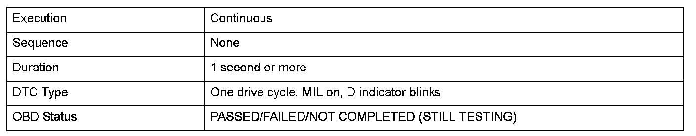 Monitor Execution, Sequence, Duration, DTC Type, OBD Status