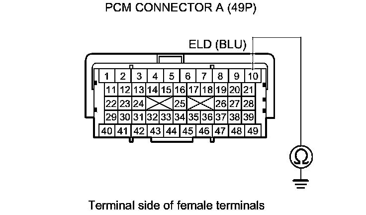 Check for poor connections or loose terminals at the ELD and the PCM. If the PCM was updated, substitute a known-good PCM, then go to step 22. If the PCM was substituted, go to step 1.