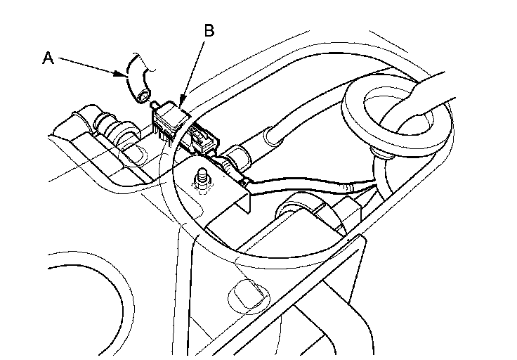 19. Disconnect the air tube (A) from the FTP sensor (B).