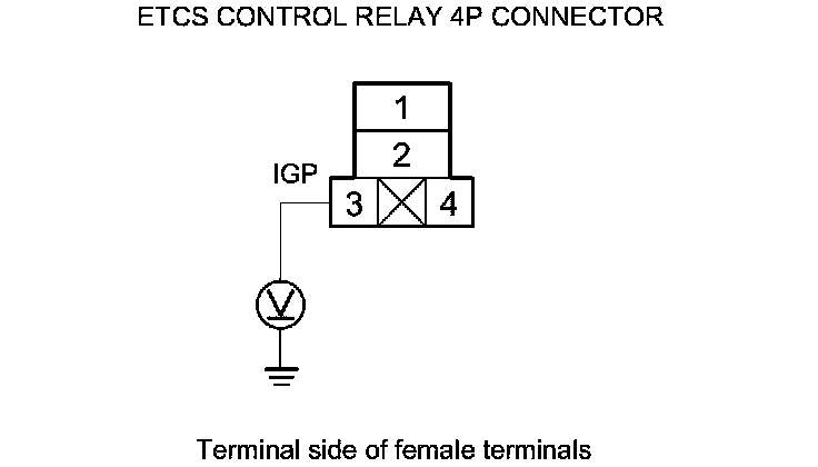 9. Measure the voltage between ETCS control relay 4P connector terminal No. 3 and body ground.