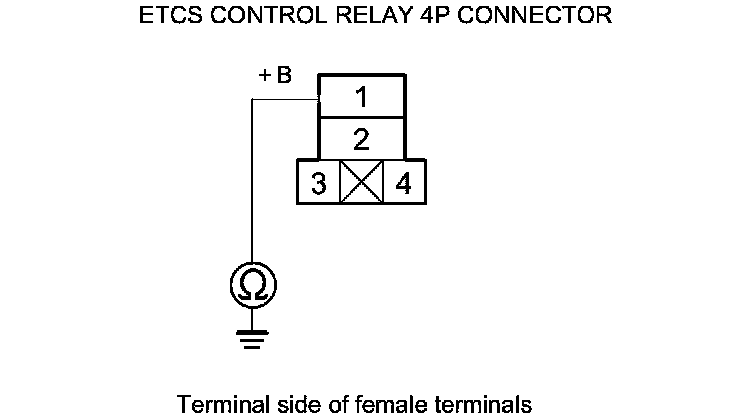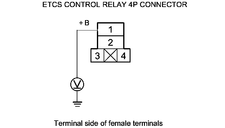 10. Measure the voltage between ETCS control relay 4P connector terminal No. 1 and body ground.