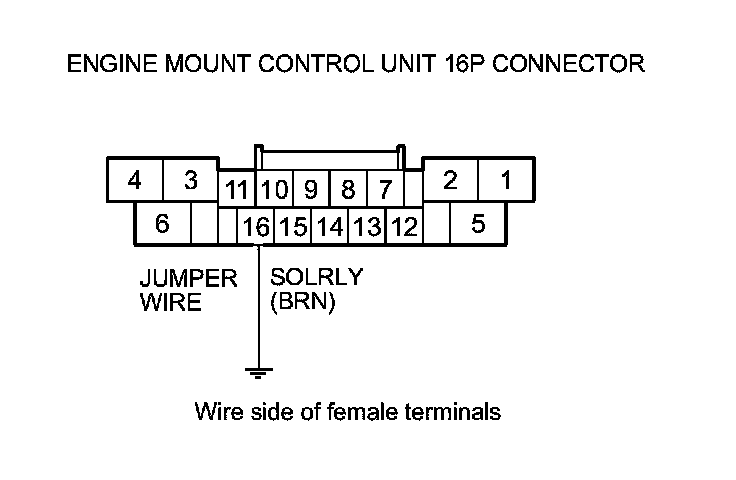 17. Connect engine mount control unit 16P connector terminal No. 16 and body ground with a jumper wire.