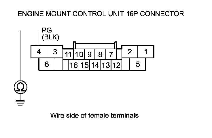24. Check for continuity between engine mount control unit 16P connector terminal No. 4 and body ground.