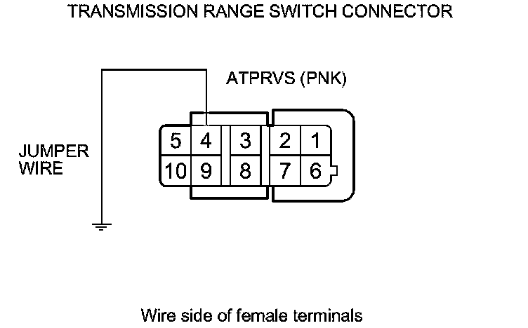 6. Connect a jumper wire between transmission range switch connector terminal No. 4 and body ground.