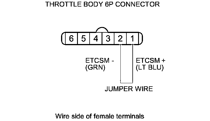 19. Connect throttle body 6P connector terminals No. 1 and No. 2 with a jumper wire.