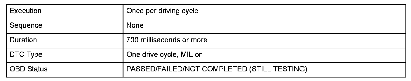 Monitor Execution, Sequence, Duration, DTC Type, OBD Status
