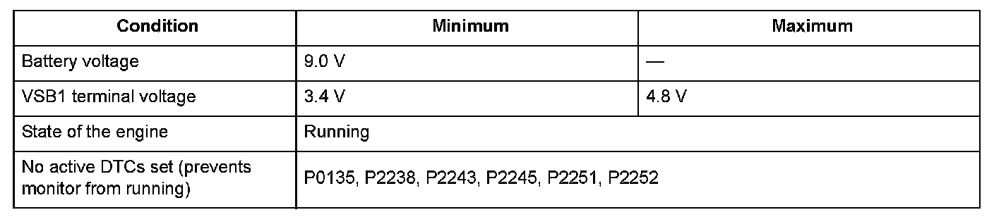 Conditions for setting the DTC