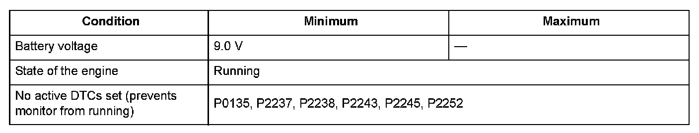 Conditions for setting the DTC