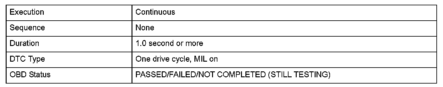 Monitor Execution, Sequence, Duration, DTC Type, OBD Status