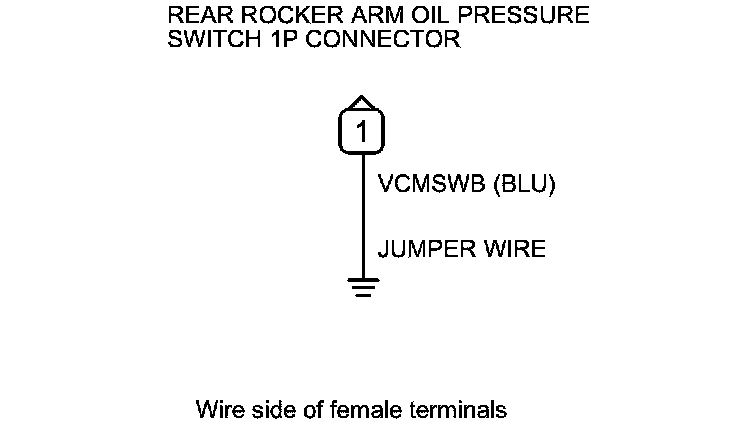 17. Connect the rear rocker arm oil pressure switch 1P connector terminal to body ground with a jumper wire.