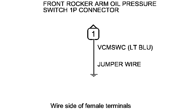 17. Connect the front rocker arm oil pressure switch 1P connector terminal to body ground with a jumper wire.