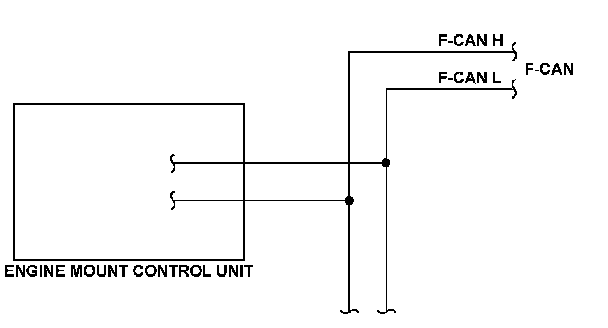The controller area network (CAN) transmits/receives pulsing signals to/from the control modules simultaneously by using two signal lines (F-CAN H and F-CAN L). When the engine mount control unit does not receive the signals via the F-CAN lines for a set time, the PCM detects a malfunction and stores a DTC.