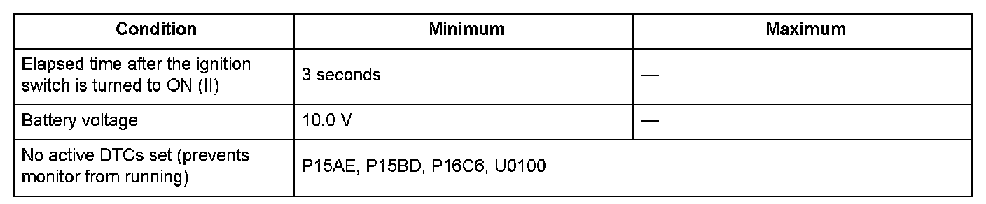 Conditions for setting the DTC