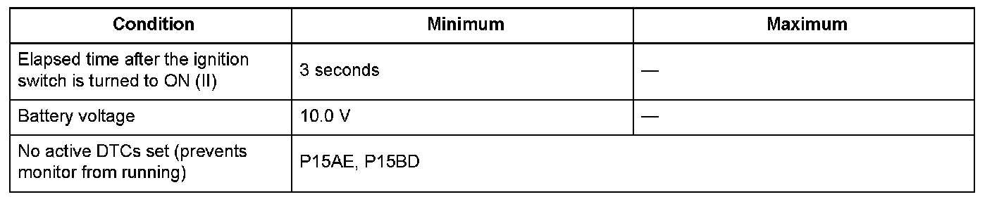 Conditions for setting the DTC