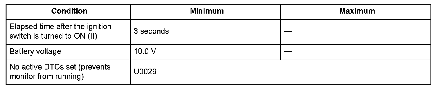 Conditions for setting the DTC