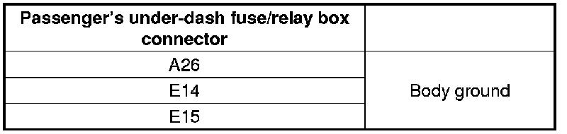 9. Measure the voltage between body ground and passenger's under-dash fuse/relay box connector A (38P) and E (18P) terminals as shown.