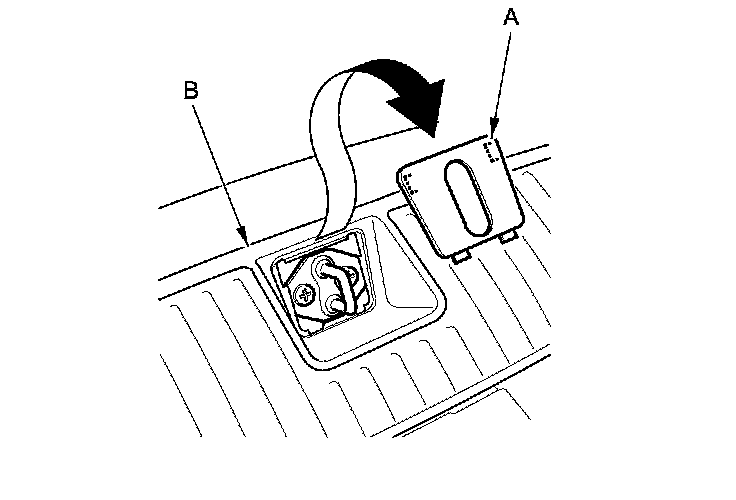 2. Remove the striker cap (A) from the rear trim panel (B).