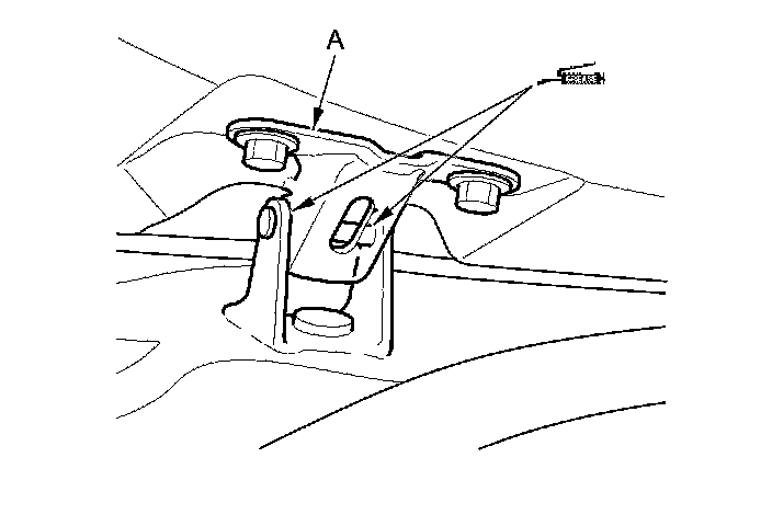 3. Slightly loosen the tailgate hinge mounting bolts (A) and the striker mounting screws (B).