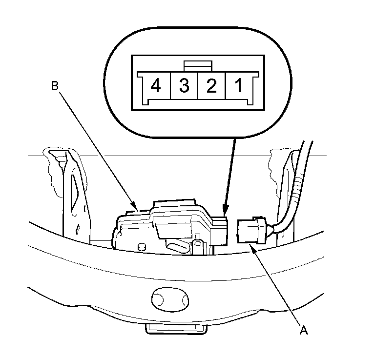 2. Disconnect the 4P connector (A) from the tailgate latch assembly (B).