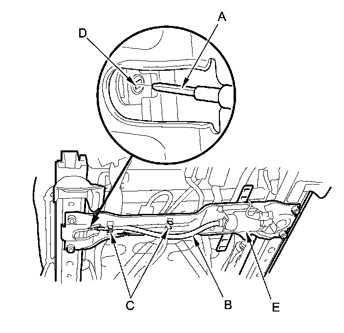 2. Disconnect the cable from the worm gear (D) in the inner seat track by pulling out the housing.