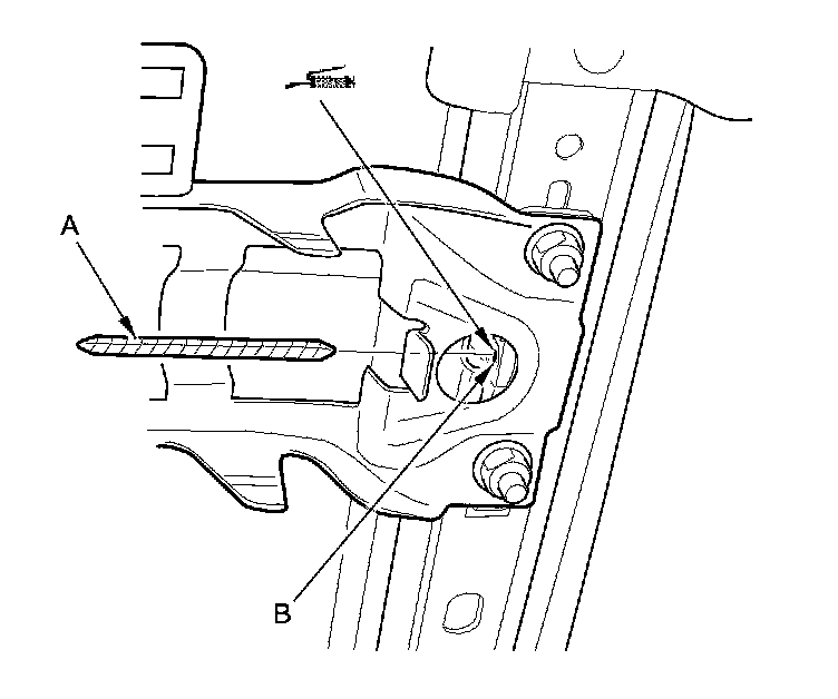 4. Pull out the short flex cable (A) from the worm gear (B) in the outer seat track.