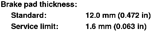 4. If any part of the brake pad thickness is less than the service limit, replace the brake pads as a set.