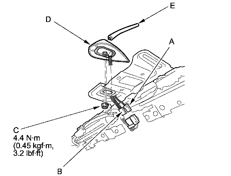 3. Remove the AM/FM/XM antenna and the antenna mast (E).