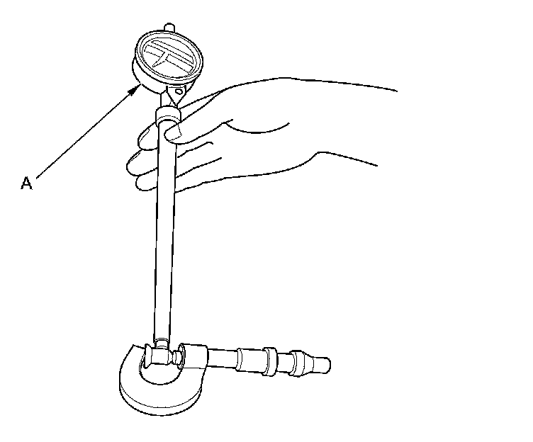 2. Zero the dial indicator (A) to the piston pin diameter.