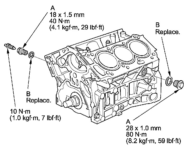 NOTE: When installing the sealing bolts (A), always use new washers (B).