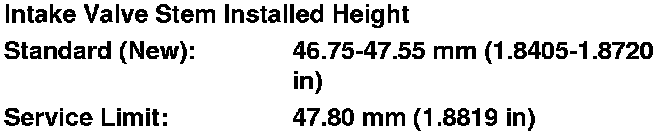 9. If the valve stem installed height is over the service limit, replace the valve and recheck. If it is still over the service limit, replace the cylinder head; the valve seat in the head is too deep.