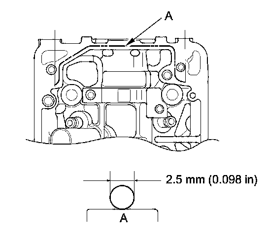 - Apply a 2.5 mm (0.098 in) diameter bead of liquid gasket along the broken line (A).