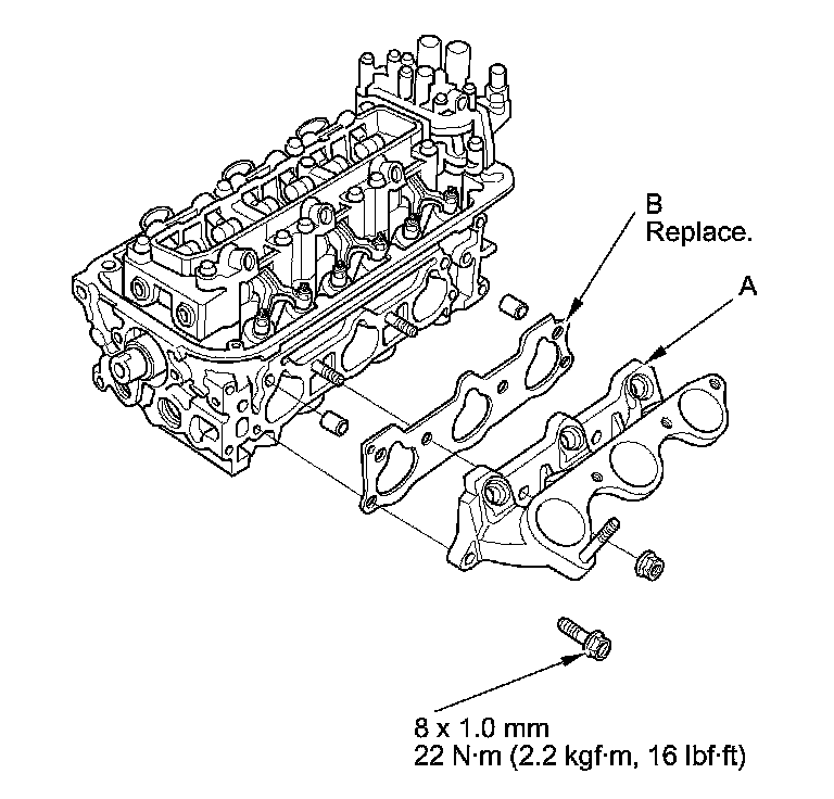 14. Install the injector base (A). Always use a new gasket (B).