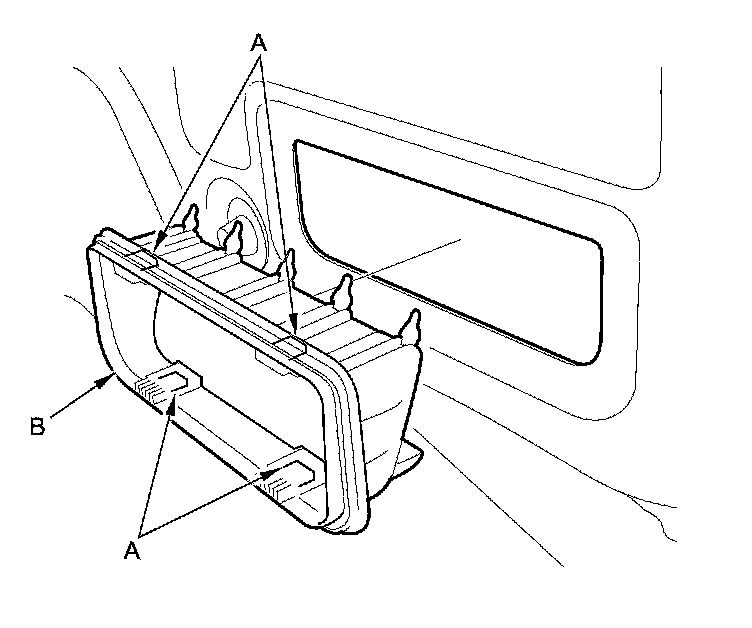 2. Release the hooks (A), then remove the rear air outlet (B).