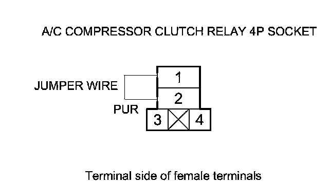 10. Connect A/C compressor clutch relay 4P socket terminals No. 1 and No. 2 with a jumper wire.