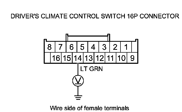 14. Measure the voltage between driver's climate control switch 16P connector terminal No. 14 and body ground.