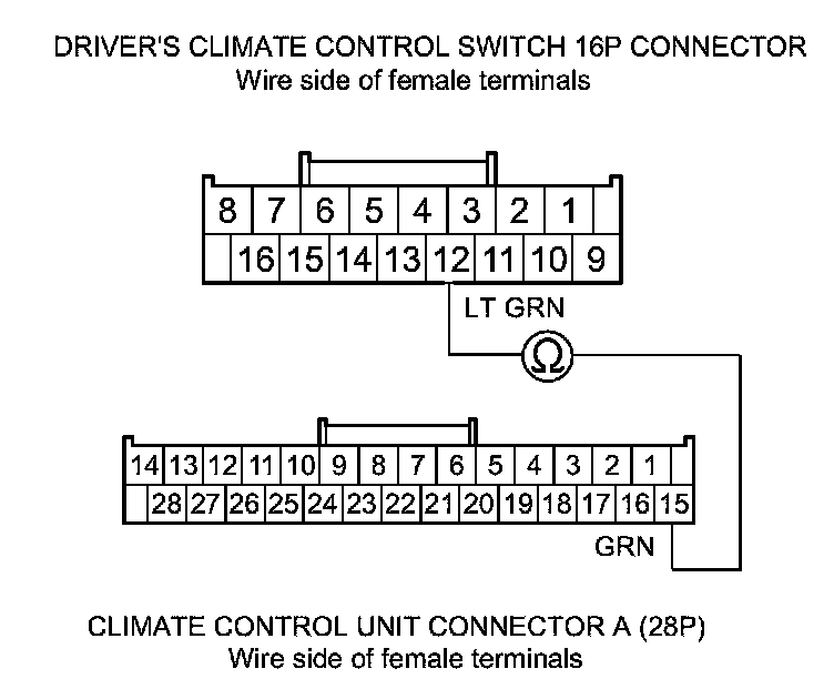 Check for loose wires or poor connections at climate control unit connector A (28P) and driver's climate control switch 16P connector. If the connections are good, replace the climate control unit Climate Control Unit Removal/Installation (With Navigation).�