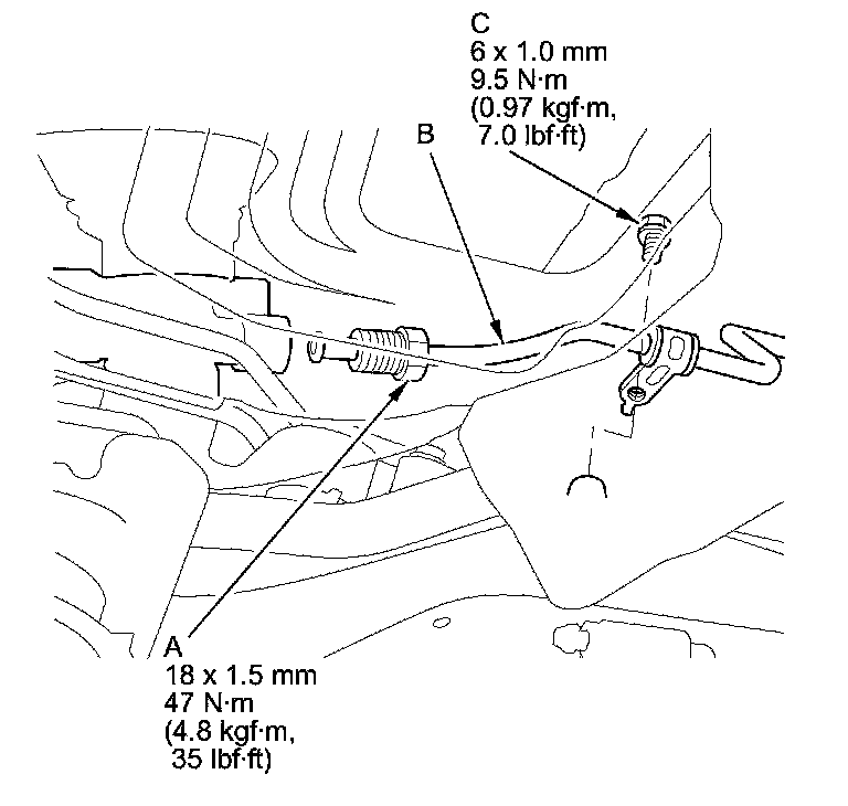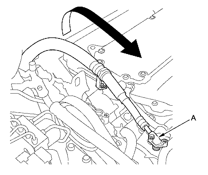 9. Loosen the 18 mm flare nut (A), and disconnect the inlet line (B).