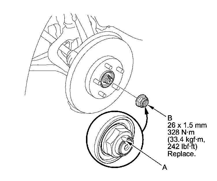 - Before installing the spindle nut, apply a small amount of engine oil to the seating surface of the nut. After tightening, use a drift to stake the spindle nut shoulder against the driveshaft.