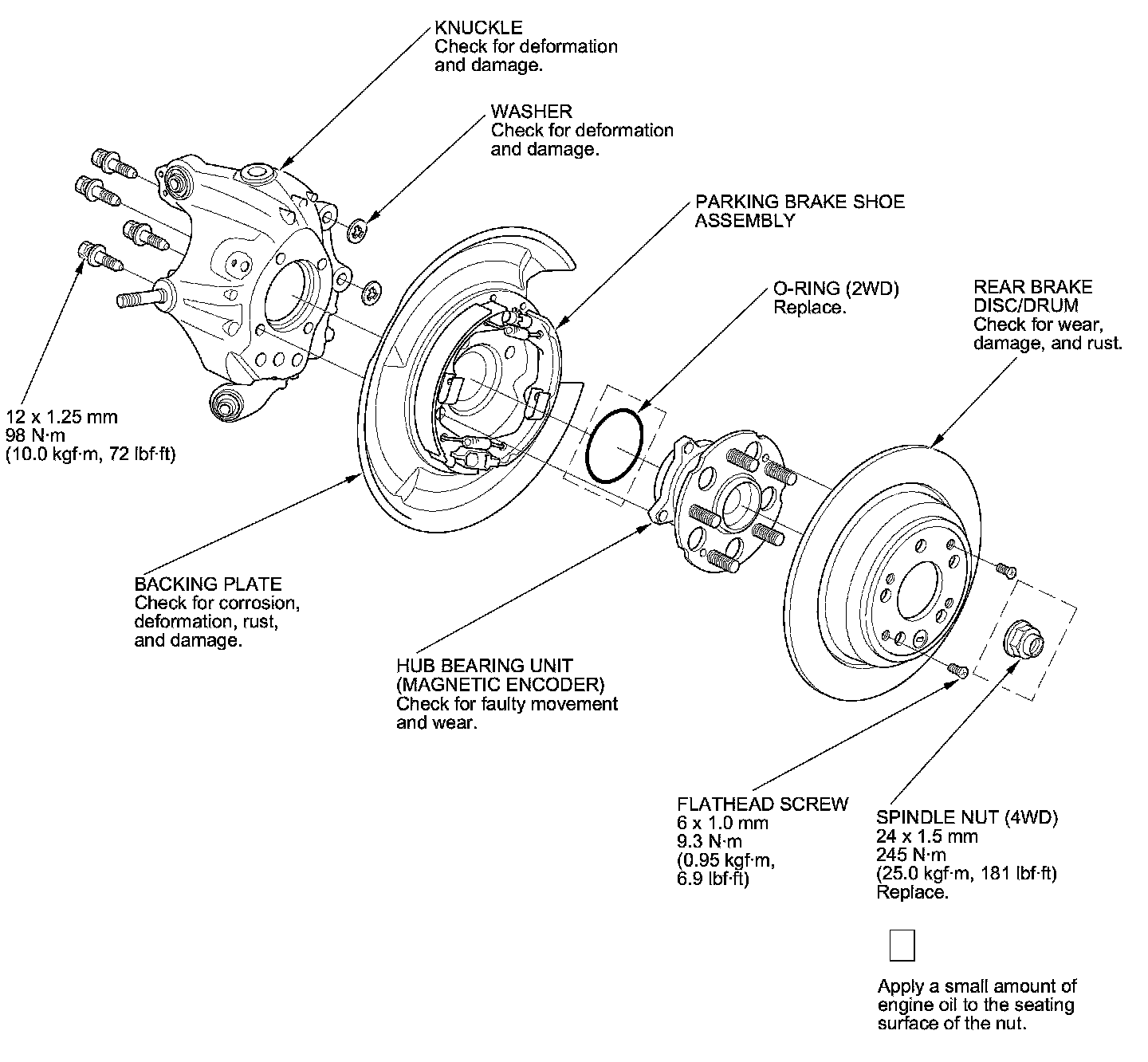 - 4WD: Use a new spindle nut on reassembly.