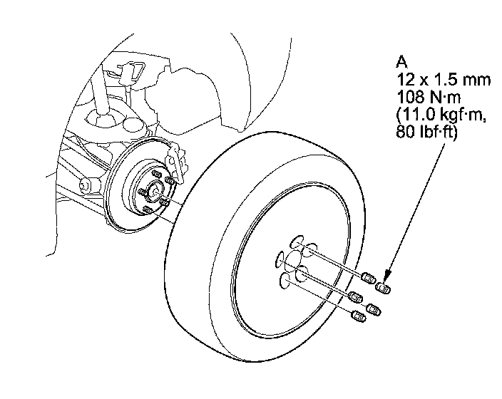 2. Remove the wheel nuts (A), and the rear wheel.
