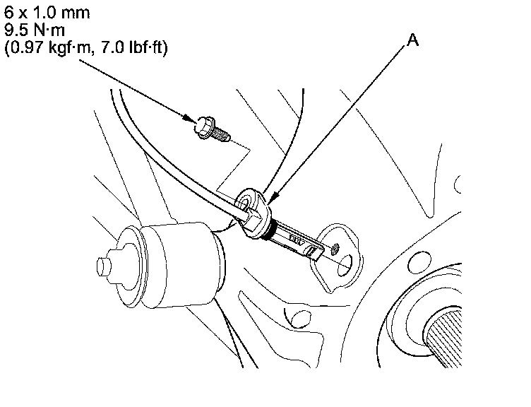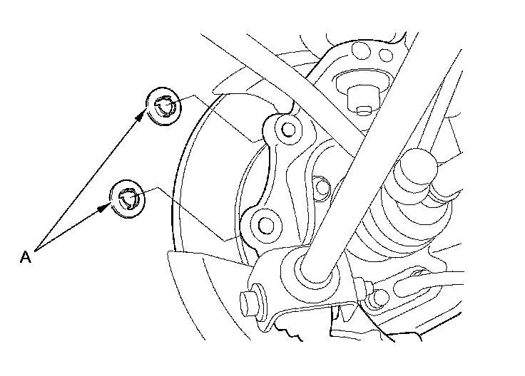 4. Remove the brake hose mounting bolt (A).