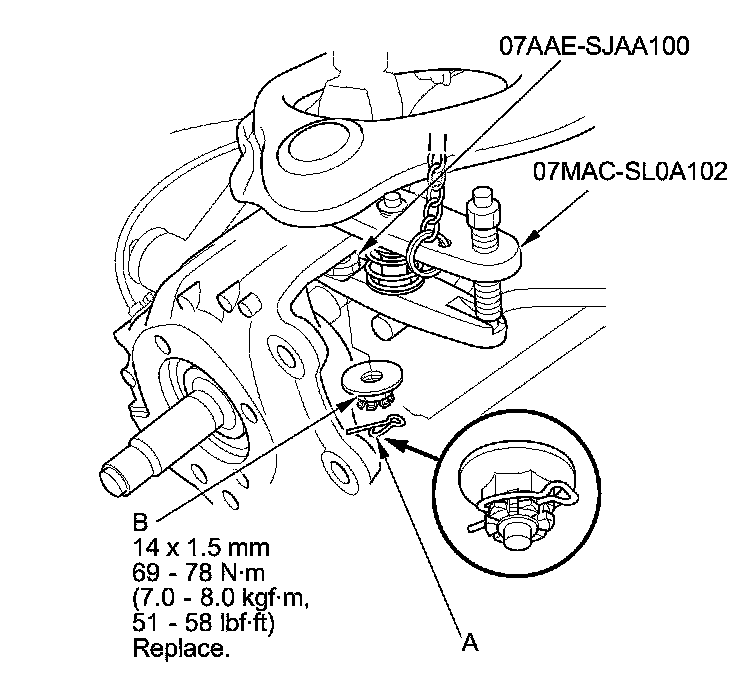 - During installation, to connect the ball joint, raise up the suspension with a jack.