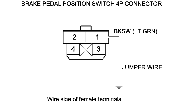 9. Connect brake pedal position switch 4P connector terminal No. 1 to body ground with a jumper wire.