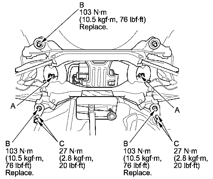 12. Install the parts in the reverse order of removal. Use new bolts when you install the rear subframe.