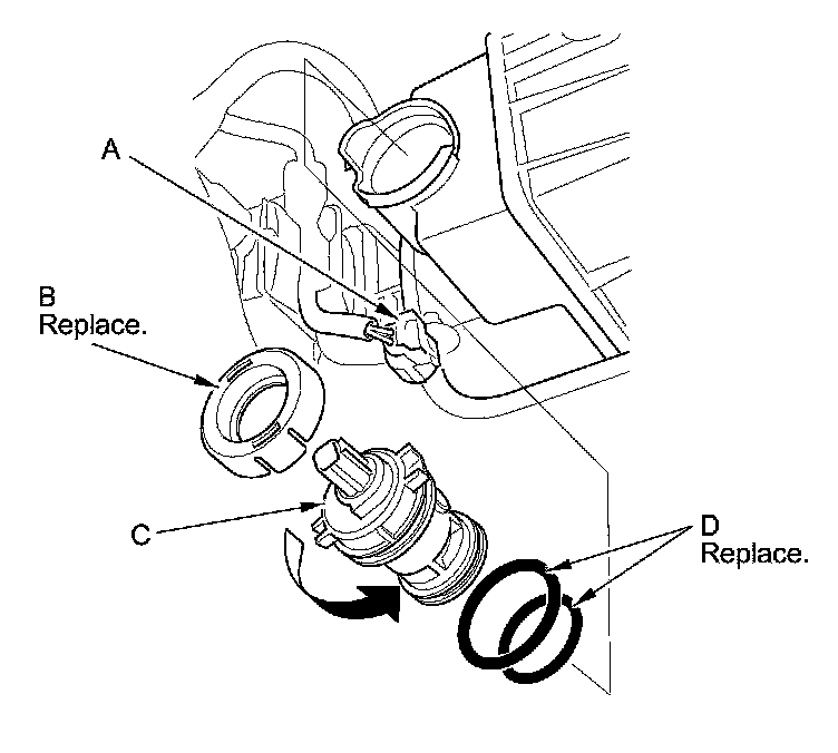 4. Install the parts in the reverse order of removal with new O-rings (D) and a new cap.