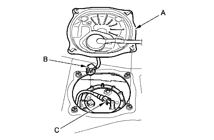 5. Disconnect the quick-connect fitting (C) from the fuel tank unit.