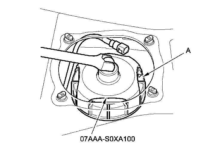6. Using the special tool, loosen the locknut (A).